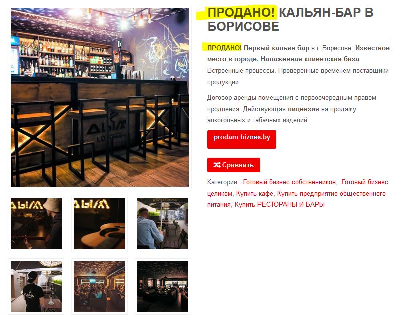 ПРОДАНО! КАЛЬЯН-БАР в Борисове