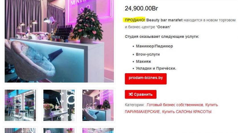 ПРОДАНО! Стильная студия красоты Beauty bar Marafet в ТЦ