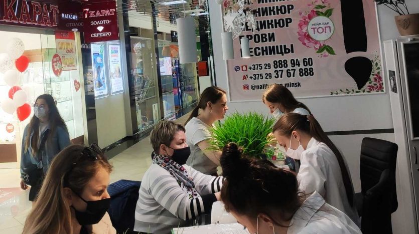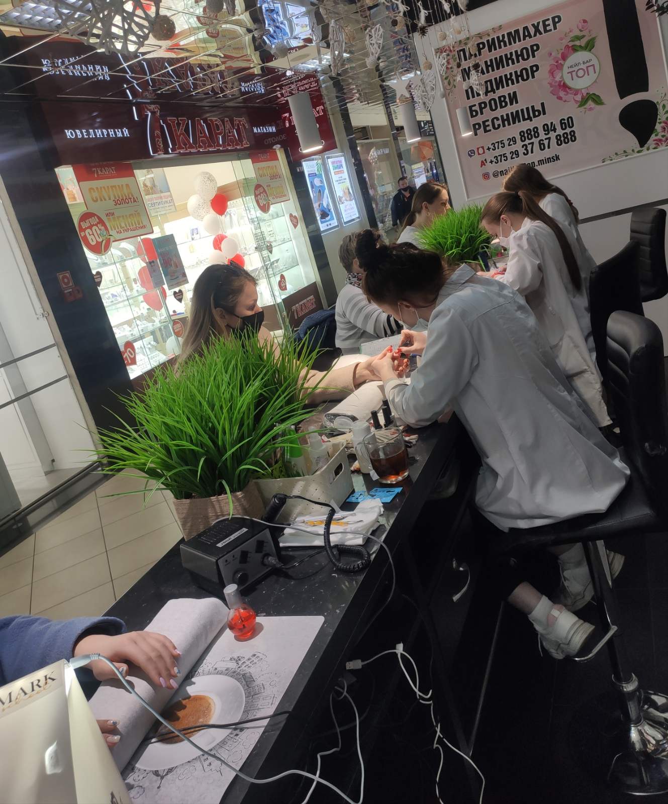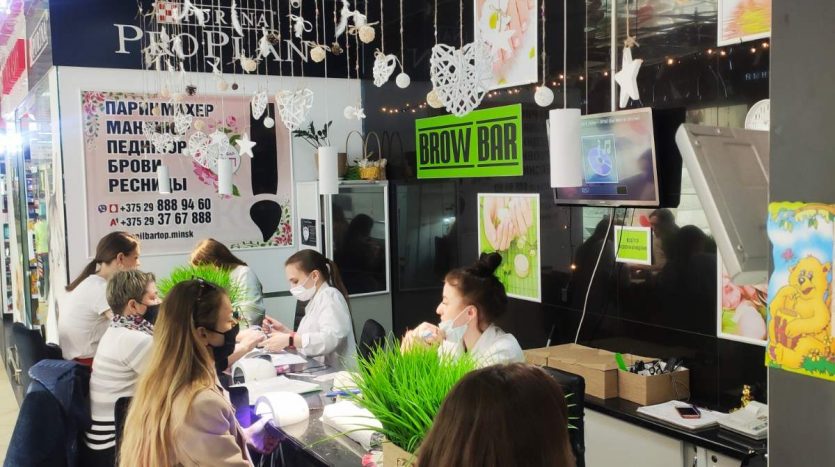 В Минске на продажу выставлен действующий нейл-бар + бров-бар + педикюрный кабинет, расположенный в торговом центре на 1 этаже (центральная галерея).