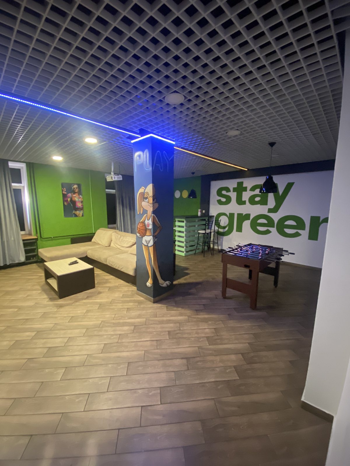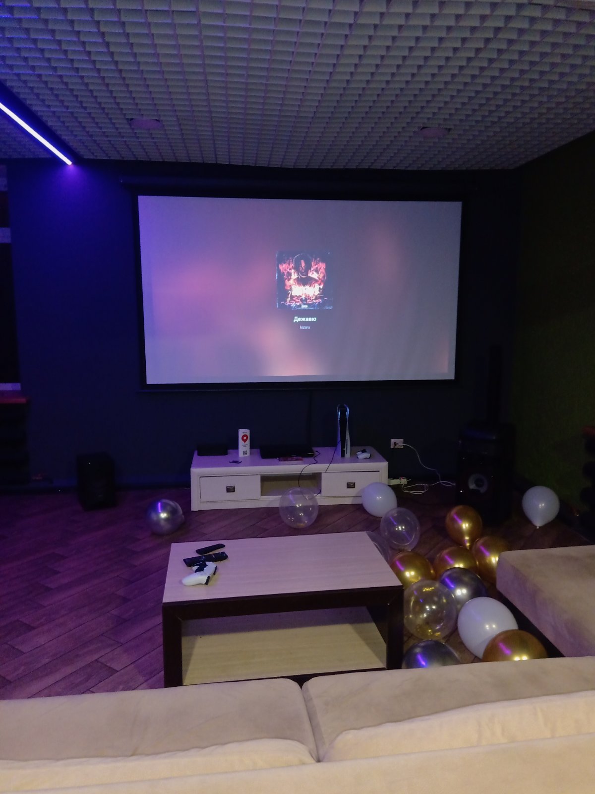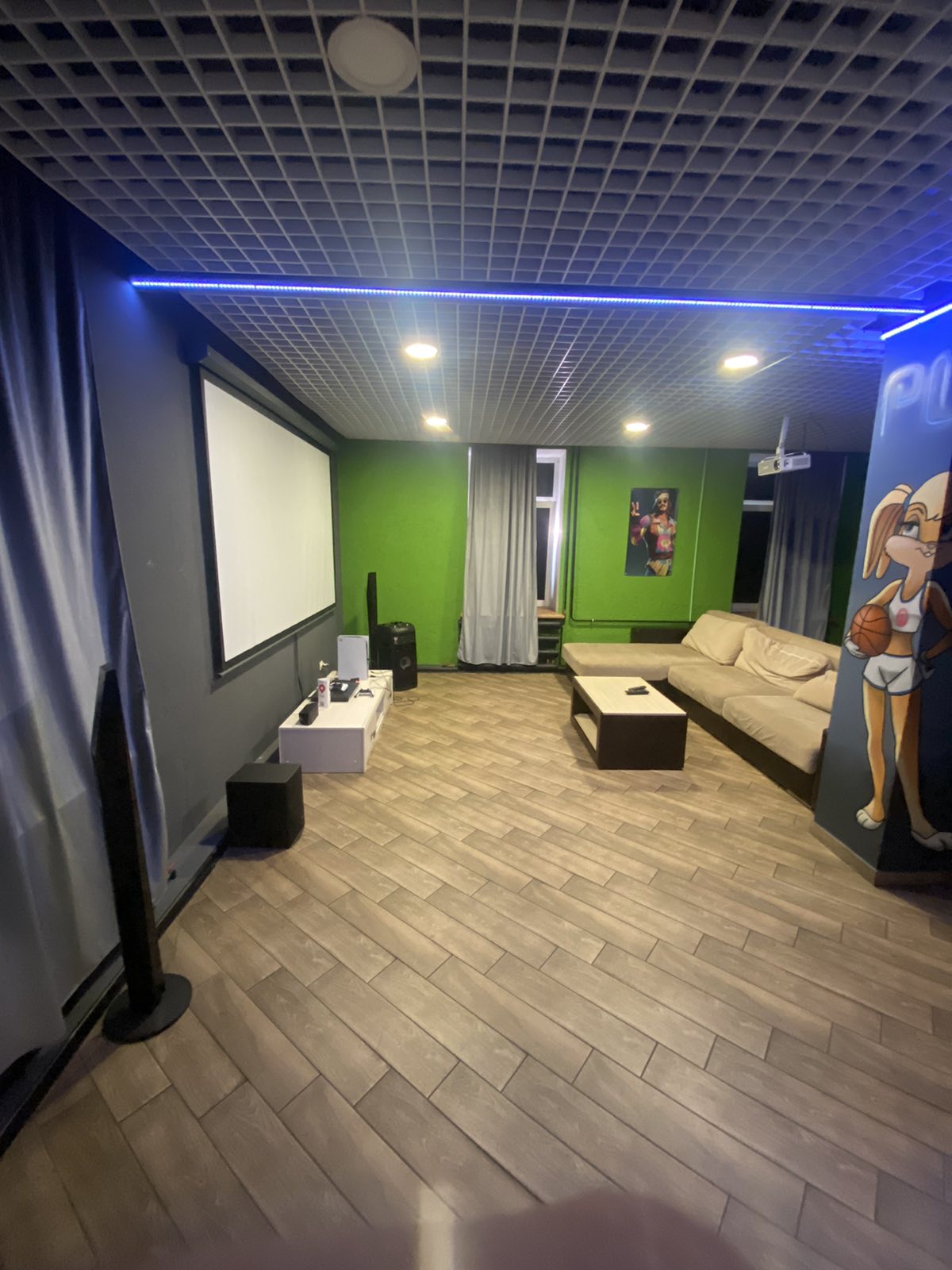 Второй зал: для индивидуального просмотра фильмов, караоке, торжеств, есть проектор с экраном , 1 приставка PS5, музыкальный центр для просмотра фильмов, и отдельное караоке, настольная игра футбол.