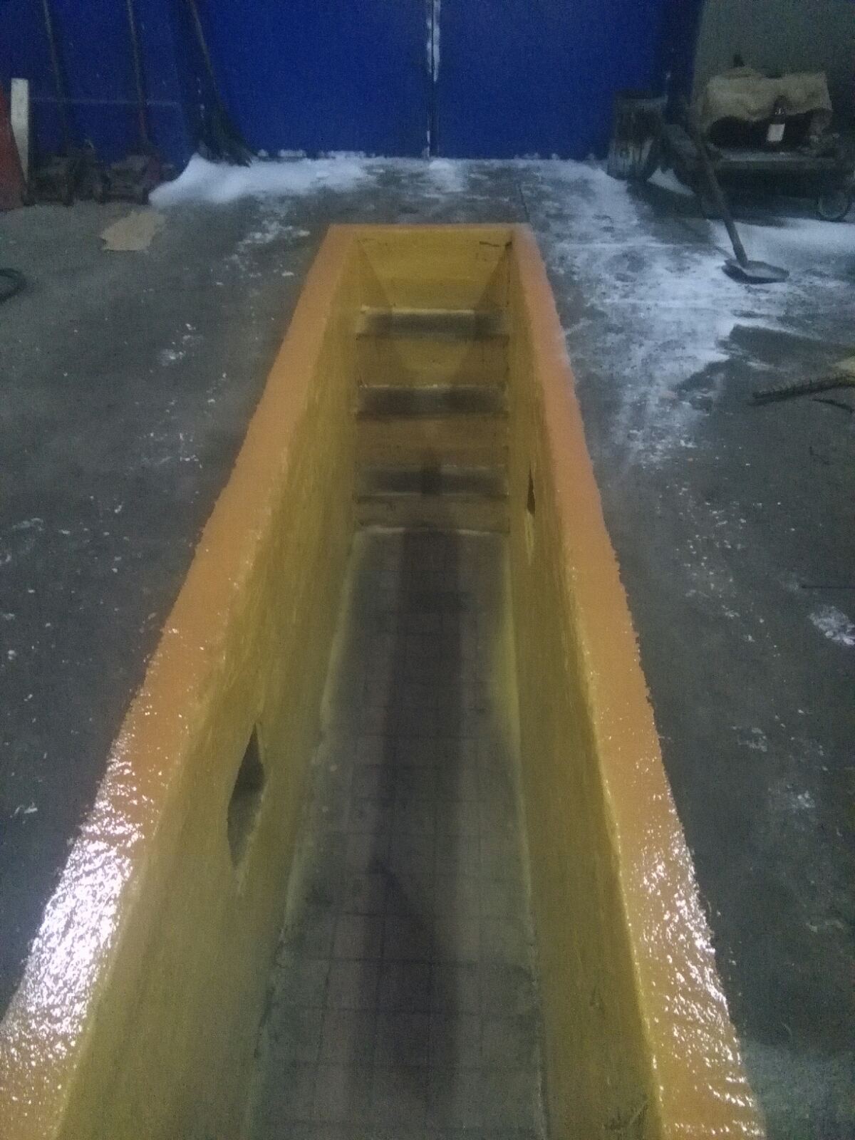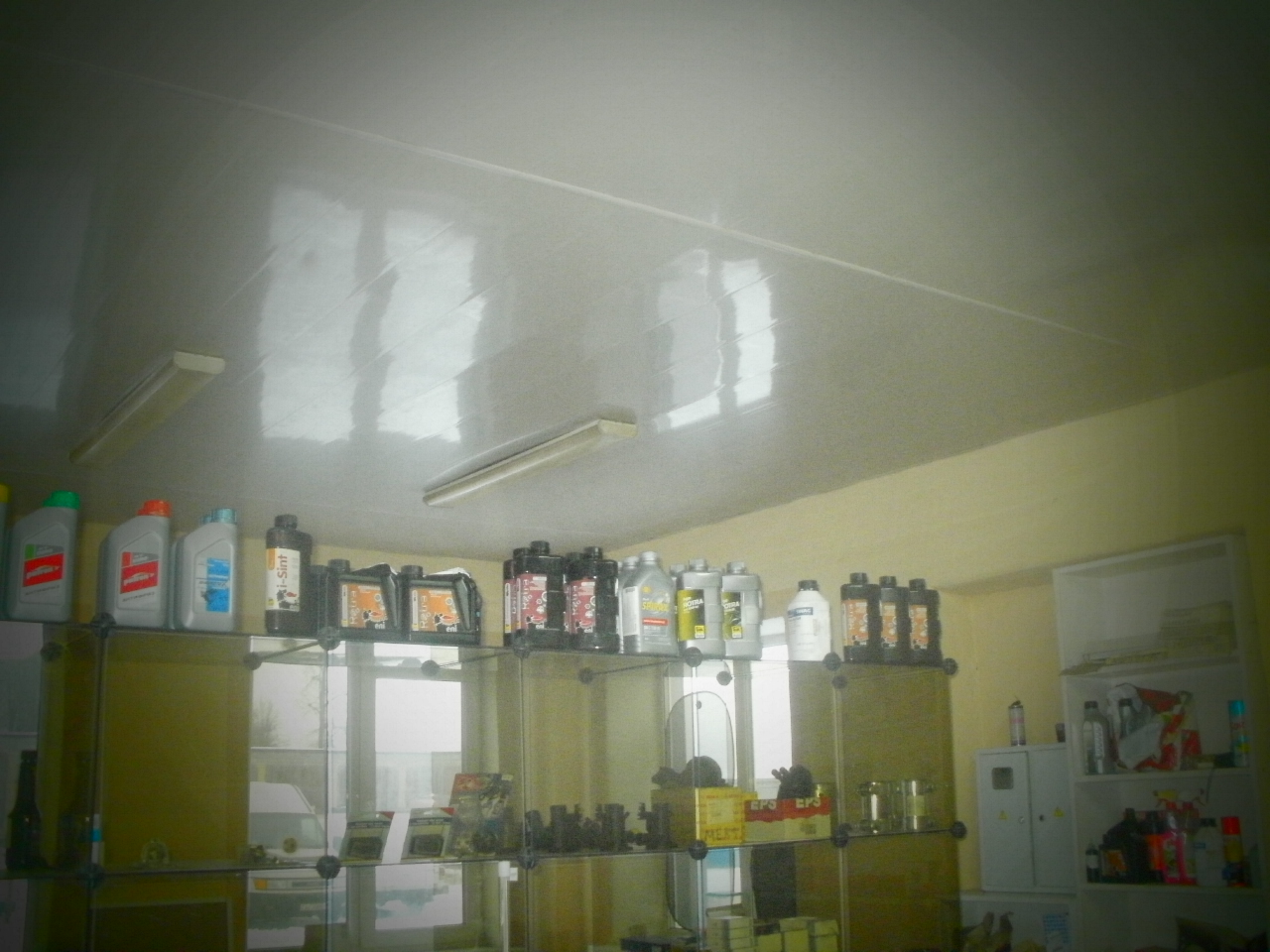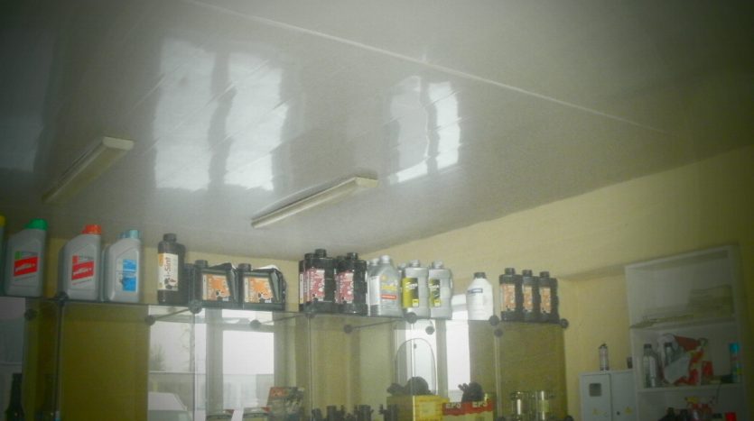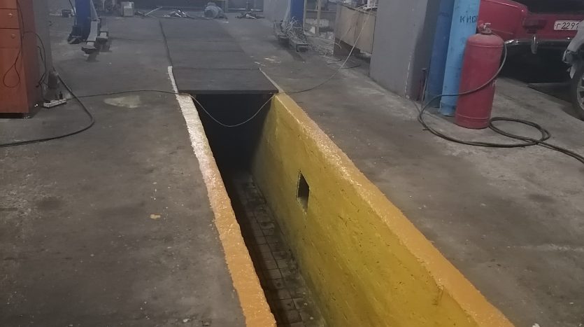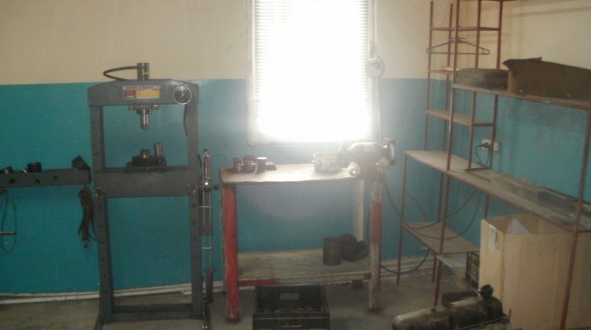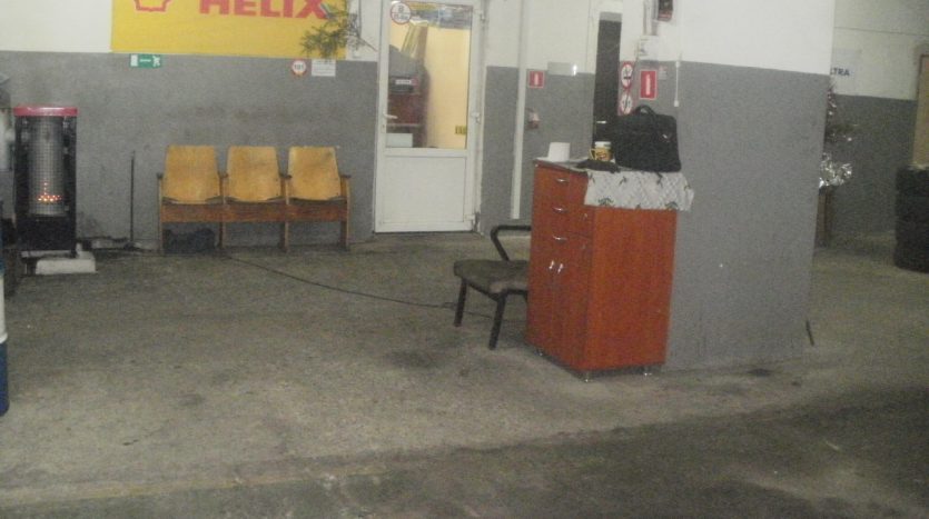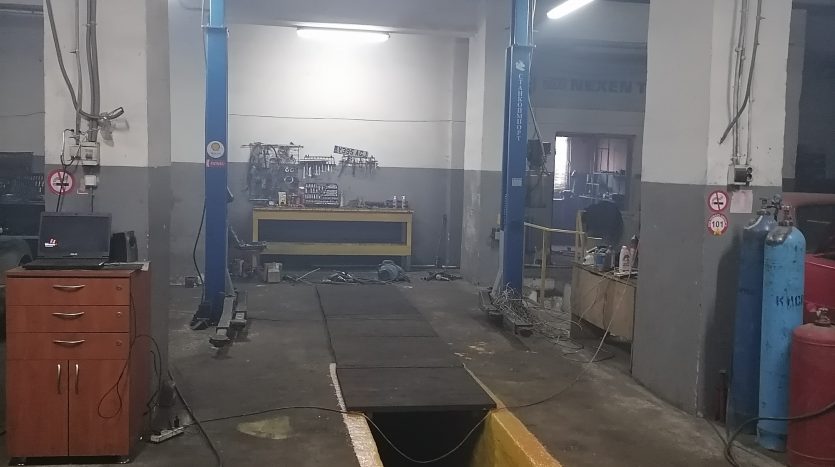 Пять ворот высотою 3.5м., четыре подъёмника (2 с верхней синхронизацией и 2 с нижней) , 2 смотровые ямы, 8 рабочих мест, офис, склад запчастей.