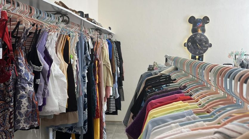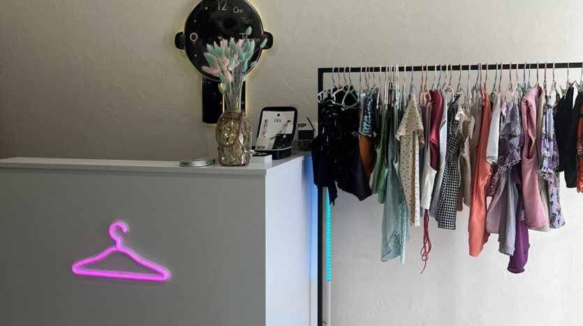В магазине имеются несколько крупных зеркал, эффектные декоративные световые часы в зоне ресепшена, изысканные вешалки, импортированные из-за рубежа для создания уникального стиля. Также в наличии разнообразные светильники, осветительные штендеры, наружные кронштейны и рекламные конструкции. В магазине предоставляется мощный отпариватель, стеллажи для обуви и аксессуаров, а также обилие декоративных элементов. Последняя модель кассового терминала 3 в 1, система видеонаблюдения и просторные комфортные примерочные также входят в комплектацию.