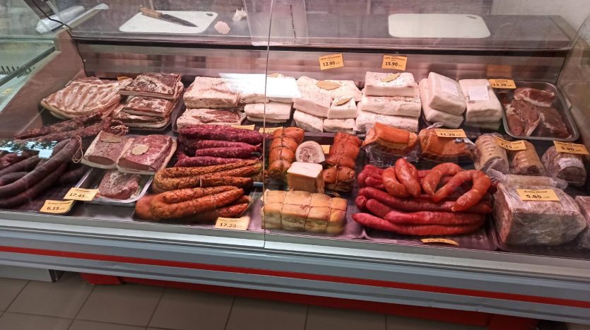 «ДЕЛИКАТЕС» — это отдельное направление в данном торговом объекте и само собой представляет продукцию крестьянско-фермерских хозяйств. В ассортимент входит: солёная и копчёная мясная продукция, сало, шпик, зельц, кумпячок, балык и т.д. Вся продукция находится в отдельной витрине.